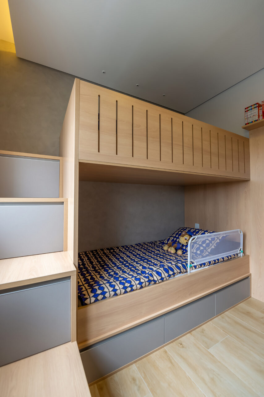 🏠 Beliches com escadinha de gavetas: perfeitas para otimizar o espaço e facilitar o acesso das crianças, com segurança e muito estilo.